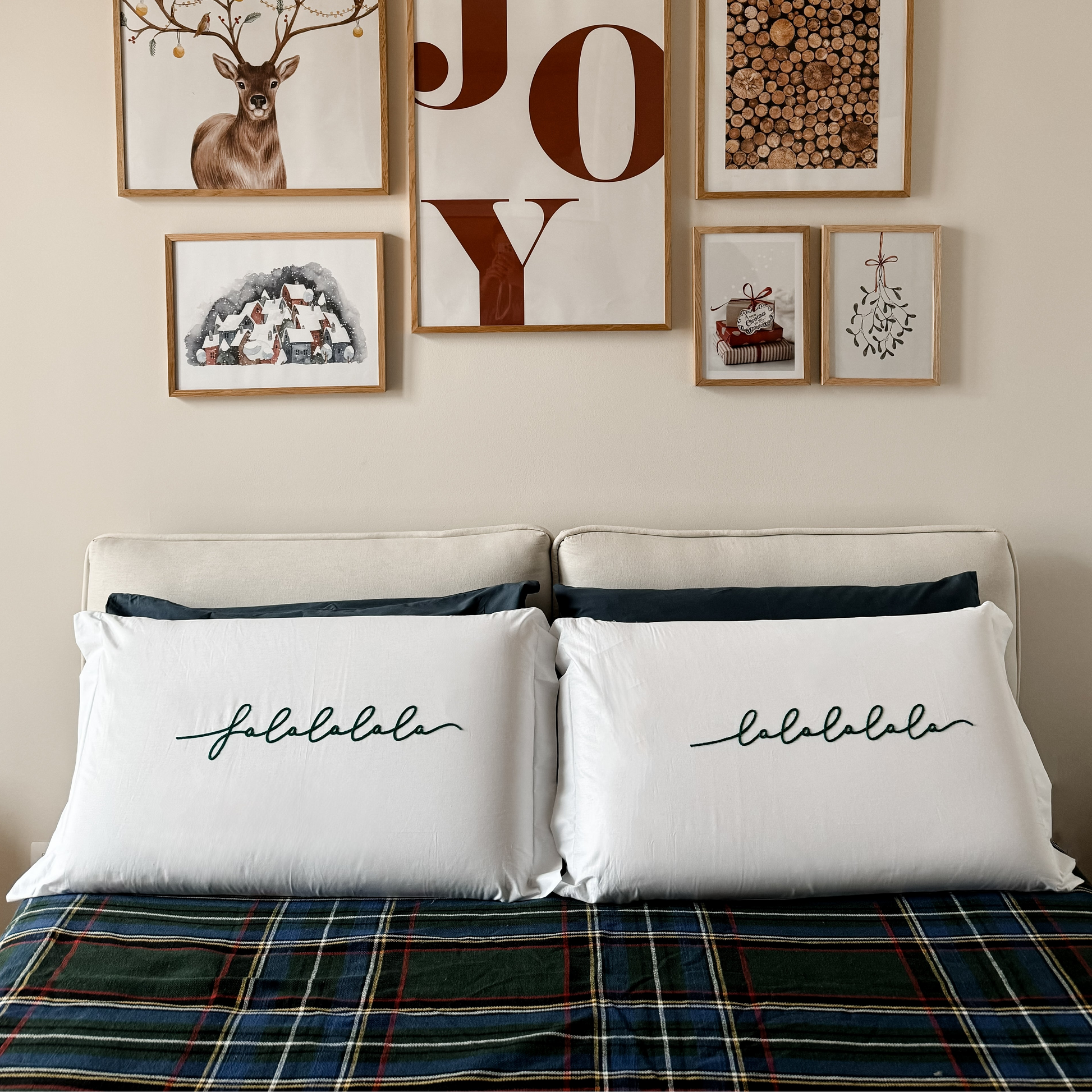 Rendi magico il tuo letto durante le feste con le federe matrimoniali "Holly Jolly"! Realizzate in cotone, con ricamo disponibile nel colore rosso e verde, portano un tocco di allegria natalizia alla tua camera. Il design ispirato al Natale unisce eleganza e spirito festivo, per un riposo avvolto da calore e sorrisi!