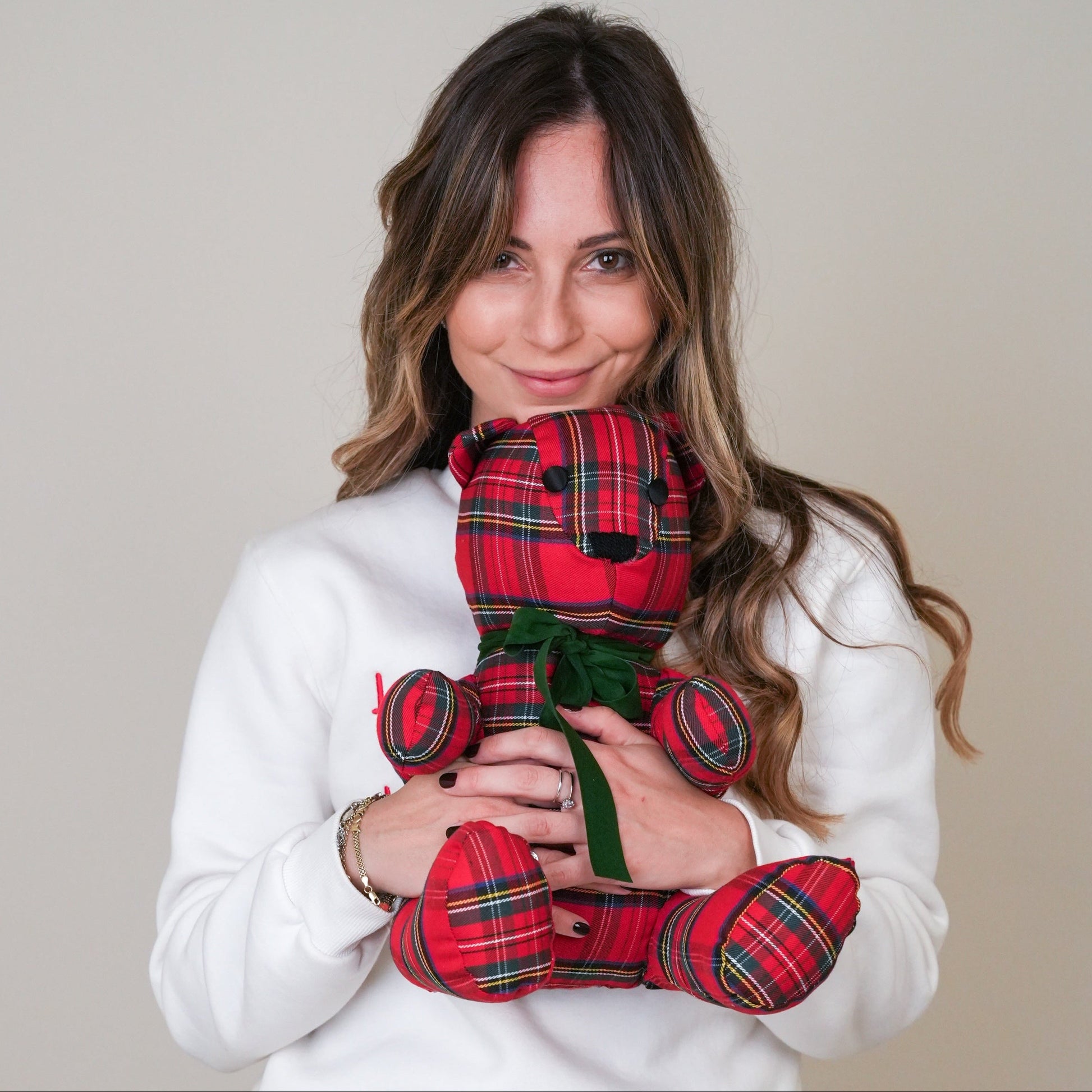 Morbido, elegante ed irresistibilmente natalizio: il nostro Teddy in tartan, fatto interamente a mano, porta un tocco di calore e tradizione in ogni casa. Perfetto da mettere in salotto, accanto al tuo albero di Natale o nella cameretta del tuo bambino, dove potrà diventare il suo dolce amico per le feste o una tenera decorazione da custodire tutto l'anno.